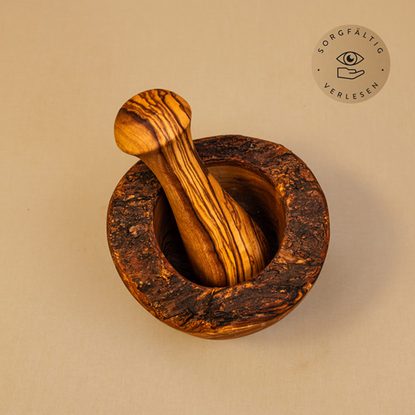 Hiesige Handwerksqualität trifft auf widerstandsfähiges Olivenholz. Ein hochwertiges wie robustes Set an Mörsern und eine Investition, die dir über Jahre hinweg treue Dienste leisten und deine Küche bereichern wird.