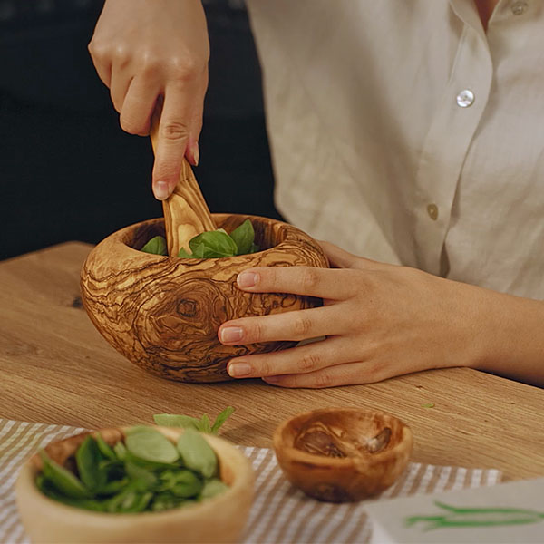 Du liebst es, zu kochen und legst zugleich Wert auf natürliche Küchenaccessoires? Die Mörser aus unbehandeltem Olivenholz überzeugen mit ihrem zeitlosen Design, das sowohl im offenen Küchenregal wie auch auf dem Esstisch für Begeisterung sorgt.
