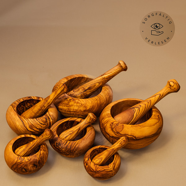 Beständig ist nicht nur das Holz, aus dem wir unsere Mörser fertigen, sondern auch die Lebensdauer jedes einzelnen unserer Produkte: In unserer Manufaktur in Bayern von Hand gefertigt, wird jeder Mörser aus reinem Olivenholz höchster Qualität hergestellt. So entsteht ein Mörser-Set, das über viele Jahre Freude bereitet und mit etwas Pflege (Olivenholz liebt eine regelmäßige Ölkur) lange seine natürliche Schönheit bewahrt.