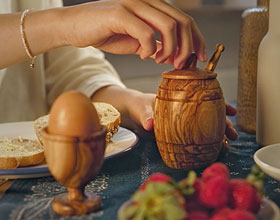 Finde jetzt deinen Honigtopf aus Olivenholz!