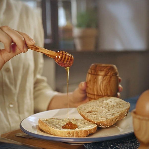 Eine noch schönere Verpackung ist nur die Bienenwabe selbst. Unsere Honigtöpfe und Löffel aus Olivenholz sind ein Blickfang auf deinem Frühstückstisch und so natürlich, wie Honigaufbewahrung nur sein kann.