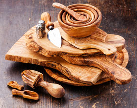 Massives und sehr robustes Olivenholz mit außergewöhnlicher Maserung. Sieht einfach spitze aus und wird uns garantiert lange Freude machen. Habe ich mehrfach verschenkt – kam immer sehr gut an!