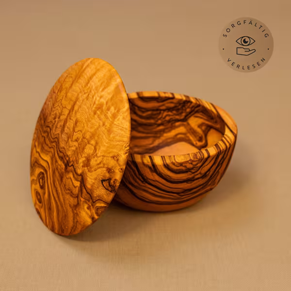 Jede Dose wird mit großer Sorgfalt von Hand gefertigt und geschliffen, bis die Oberfläche angenehm glatt und samtig ist. Das massive Olivenholz macht sie besonders robust und sorgt dafür, dass sie über Jahre hinweg Freude bereitet. Ein praktisches und stilvolles Naturprodukt für alle, die Wert auf hochwertige Materialien und exzellente Handwerkskunst legen.