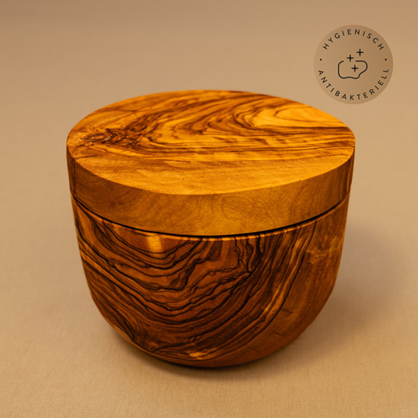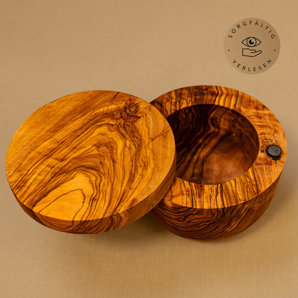 Olivenholz ist bekannt für seine markante Maserung mit lebhaften Farbverläufen von warmem Gold bis zu tiefen Brauntönen. Keine Dose gleicht der anderen – jede ist ein handgefertigtes Unikat, deren schlichte Eleganz dein Zuhause optisch garantiert bereichert.