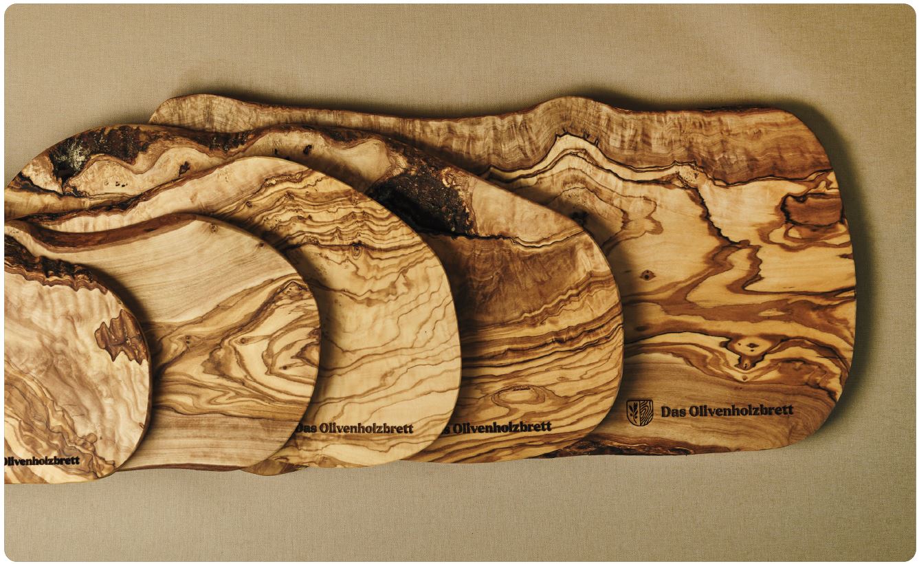 Massives und sehr robustes Olivenholz mit außergewöhnlicher Maserung. Sieht einfach spitze aus und wird uns garantiert lange Freude machen. Habe ich mehrfach verschenkt – kam immer sehr gut an!