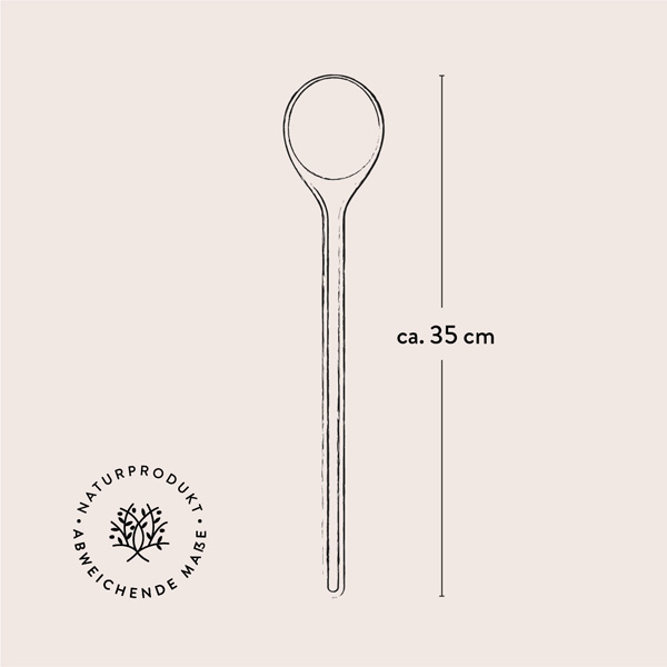 Wer einmal diesen Kochlöffel aus Olivenholz in den Händen gehalten hat, wird der Sugo nie mehr anders umrühren wollen. Versprochen. Fein von Hand verarbeitet, liegt der runde Stiel sanft und doch massiv in den Händen. Etwas schwerer als deine Kochlöffel aus Buche und Co., wirst du die Stabilität und Wertigkeit des Olivenholz-Kochlöffels beim Kochen lieben. Unverzichtbar, wenn Qualität in der Küche für dich ein Muss ist.