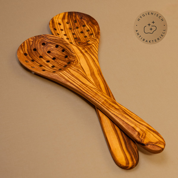 Olivenholz ist von Natur aus wasser- und hitzebeständig, wodurch es sich ideal für den Einsatz in der Küche eignet. Seine dichte Struktur verhindert das Eindringen von Flüssigkeiten, und die warme Maserung bleibt auch nach jahrelanger Nutzung erhalten.