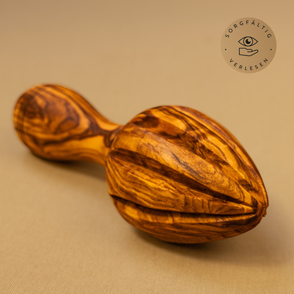 Olivenholz zählt zu den härtesten und widerstandsfähigsten Hölzern überhaupt. Die stabile Verarbeitung sorgt dafür, dass die Zitronenpresse auch bei häufiger Nutzung formstabil bleibt. Nach Gebrauch genügt einfaches Abspülen mit Wasser, gelegentliches Einölen erhält die geschmeidige Oberfläche und betont die einzigartige Maserung.