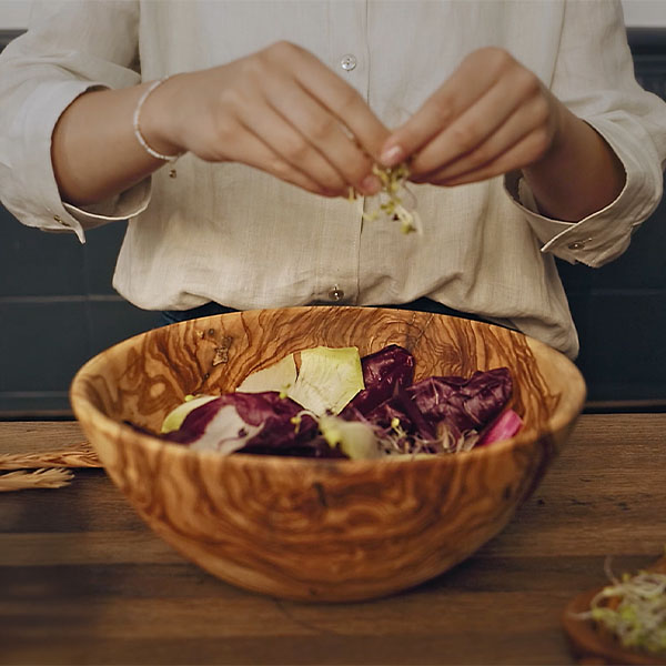 Frei von Plastik oder Chemikalien bringst du mit diesen Salatschalen ein Stück Natur in dein Zuhause. Ob beim gemeinsamen Familienessen oder als dekoratives Highlight – das hochwertige Olivenholz kreiert einen natürlichen Look und sorgt für ein gesundes Essgeschirr ohne schlechtes Gewissen.