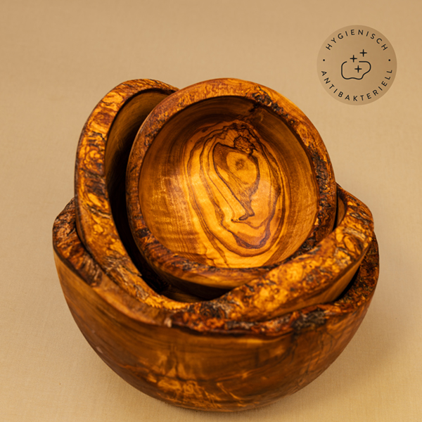 Jede Olivenholzschale entsteht in aufwendiger Handarbeit und trägt die Handschrift unserer erfahrenen Handwerker. Vom ersten Schnitt bis zum finalen Schliff wird jede Schale mit höchster Präzision und Liebe zum Detail gefertigt. Diese Handarbeit garantiert die Qualität unserer Produkte und macht diese Schale absolut einzigartig.