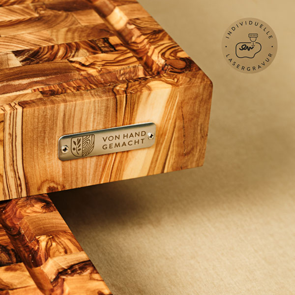 Von Hand gefertigt, für Generationen gemacht: Wähle dein Massivholzbrett aus reinem Olivenholz.