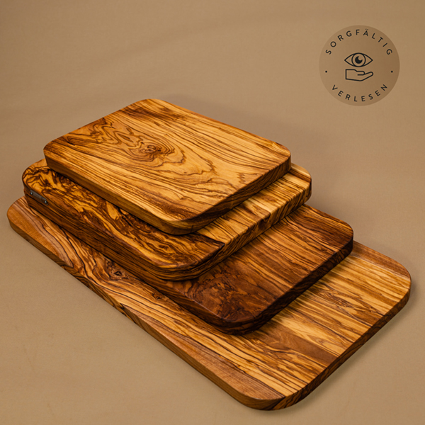 Unter den vielen positiven Eigenschaften von Olivenholz wissen unsere Kundinnen und Kunden eine ganz besonders zu schätzen: Durch den langsamen Wuchs des Baumes und den natürlichen Ölgehalt im Holz ensteht ein ausgesprochen robustes Holz, das die Klingen schont und zu weniger Kratzern in der Oberfläche führt. Damit gehört dieses 2er Set massiver Olivenholzschneidebretter als Grundausstattung in jede Küche, in der gerne gekocht wird. Ob zum Zerkleinern von Gemüse, Schneiden von Brot oder Filetieren von Fisch: Diese Schneidebretter werden dir auch bei intensivem Gebrauch lange Freude machen.