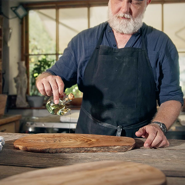 Kein Brotzeitbrett gleicht dem andren. Ganz einfach deshalb, weil wir uns beim Schneiden der Bretter am natürlichen Wuchs des Olivenbaumes orientieren. So erhalten diese Brotzeitbretter ihre geschwungene Form. Bleibt uns nur noch das finale Einölen - den Rest macht die Natur selbst.