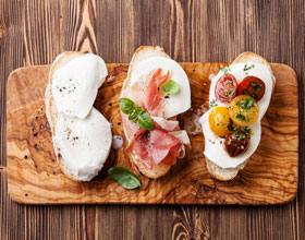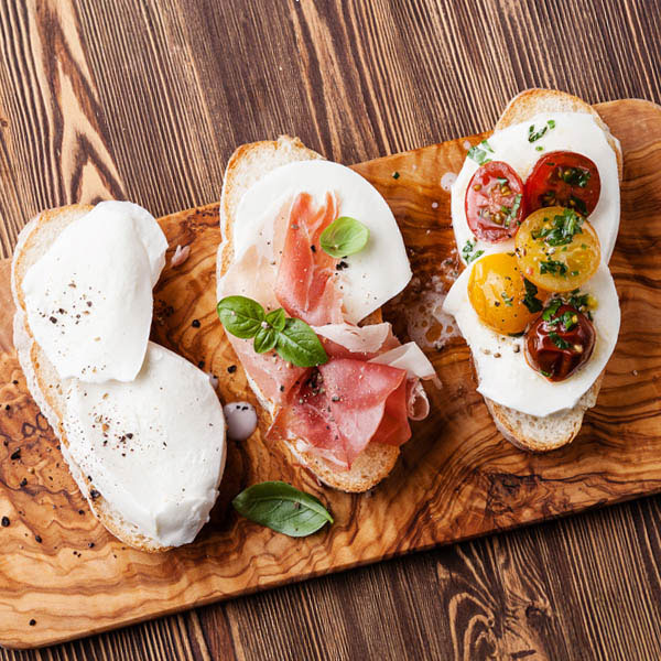Unsere Olivenholz-Frühstücksbretter eigenen sich auch hervorragend zum Anrichten und Servieren von Brunch, Brotzeit oder Vesper.