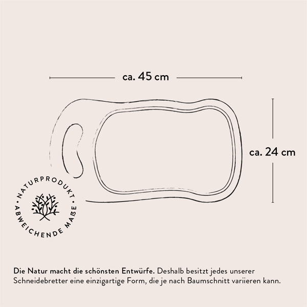 Dank des griffigen Henkels liegt dieses Steakbrett in allen Formaten gut in den Händen. Gleichzeitig setzt der naturbelassene Rand optische Akzente und unterstreicht die rustikale Ästhetik des Steakbretts.