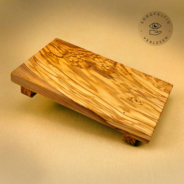 In unserer Manufaktur am bayerischen Alpenrand wird jedes Brett von Hand gefertigt – mit einem Blick fürs Detail und viel Erfahrung im Umgang mit Olivenholz. Die 4 cm hohe Form erinnert an klassische japanische Sushi-Platten und sorgt für Stabilität und Präsenz auf dem Tisch. Erhältlich in den Größen 25 × 15 cm, 30 × 20 cm, 40 × 20 cm ist für jede Tischrunde das passende Format dabei.