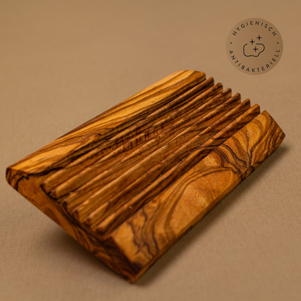 Die eingeschnitzten Rillen sorgen dafür, dass überschüssiges Wasser nach dem Waschen abfließen kann und die Seife nicht im Nassen liegt. So trocknet sie schneller, bleibt formstabil und hält länger. Ein funktionales Detail mit großer Wirkung – und ganz ohne Plastik.